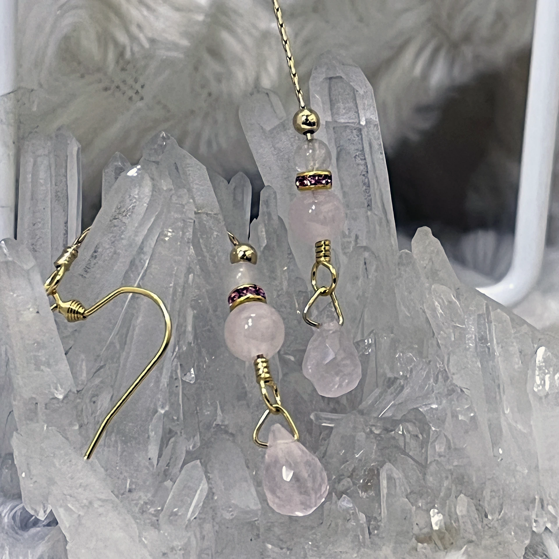 ローズクォーツ恋愛運の石であるローズクォーツを使ったピアス(イヤリング)の製作